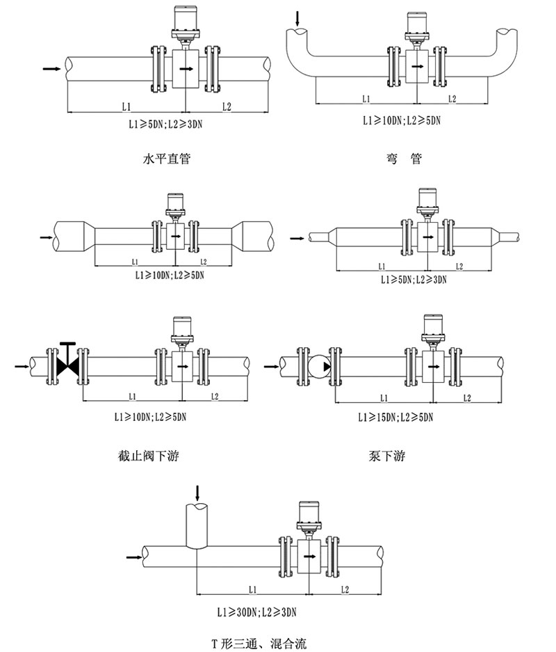 2.1直管段 使用直管段可防止介質因彎管、TT型三通、截止閥、變徑管的影響而產生渦流或失真