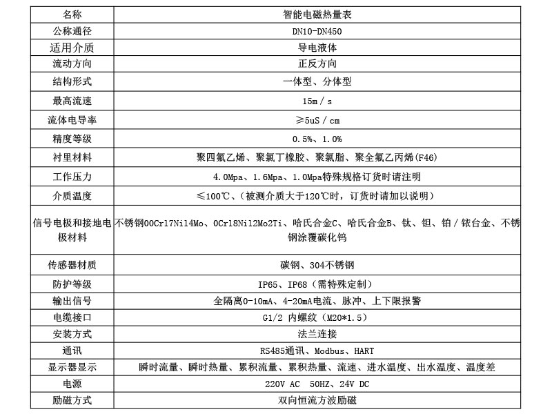 ●測量精度高,運用穩定可靠,性能優良。 ●測量精度不受流體粘度、密度、壓力、流體分布等參數變化的影響 ●測量管里無阻力部件、無壓損、不受惡劣水質的影響 ●多種襯里,多種電極的選擇 ●大屏幕液晶背光顯示,在強光和無光情況下均可清晰讀數 ●語言可顯示中文和英文 ●液晶屏顯示瞬時流量、瞬時熱量、累積流量、累積熱量、進水溫度、出水溫度、溫差、流量流速 ●采用溫度變化的熱焓修正法,保證在不同水溫下的精準計量 ●具有RS485、Modbus、HART通訊 ●數據自動存儲 ●220V AC、24V DC供電