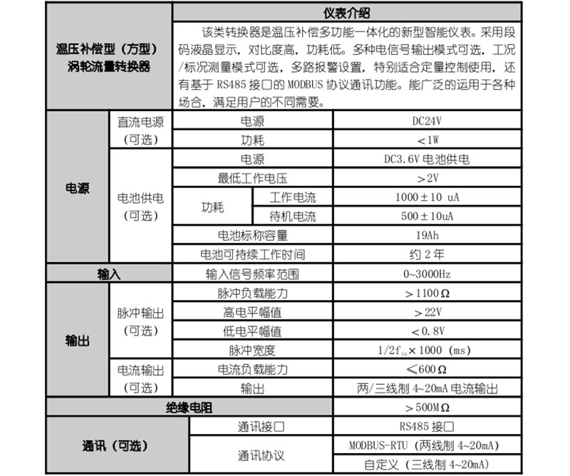 氣體渦輪流量計是新型速度式儀表。它具有精度高、重復性好、結構簡單、耐高壓、測 量范圍寬、體積小、重量輕、壓力損失小、壽命長、操作簡單、維修方便等優(yōu)點,溫壓補償 型儀表可集流量、溫度、壓力檢測功能于一體,并能進行溫度、壓力、壓縮因子自動補償。 是石油、化工、電力、冶金、工業(yè)鍋爐等工業(yè)、行業(yè)的燃氣計量和城市天然氣、燃氣調壓站 封閉管道中低粘度氣體的體積流量和總量及燃氣熱計量的理想氣體流量檢測儀表。