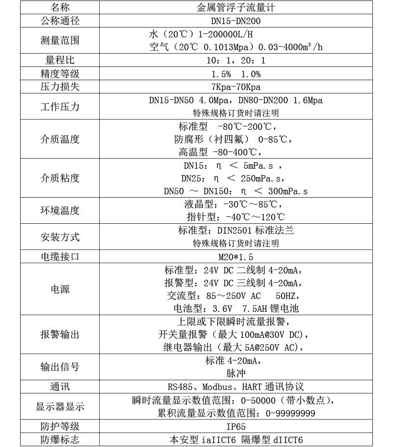金屬管浮子流量計(jì)是工業(yè)自動(dòng)化過程控制中常用的一種面積流量測量儀表。它具有體積小,檢測范圍大,使用方便等特點(diǎn)。它可用來測量液體、氣體以及蒸汽的流量,特別適宜低流速小流量的介質(zhì)流量測量。 流量計(jì)主要有三大部分組成:1.測量管體;2.錐形浮子;3.指示器。浮子的位移量與流量大小成正比,通過磁耦合系統(tǒng),以不接觸方式,將浮子位移量傳給指示器指出流量大小。也可配合不同的轉(zhuǎn)換器,將流量值轉(zhuǎn)換成標(biāo)準(zhǔn)的電遠(yuǎn)傳信號如4-20mA。實(shí)現(xiàn)距離遠(yuǎn)傳顯示、記錄、積算和控制等功能。具有獨(dú)特的雙指示系統(tǒng),雙行液晶數(shù)字顯示,耐高溫高壓。