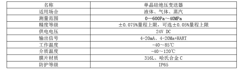先進的單晶硅壓力傳感器技術與專利封裝工藝,精心研制出的一款國際領先 技術的高性能壓力變送器
