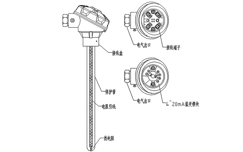 采用防腐材質,作為整體保護套管或兩節式套管,也可以直接在保護管上作該材質的防腐處理,分噴涂、燒結和套管密封三種形式,適用于在強酸或強堿的腐蝕性介質中進行測量,固定安裝形式可采用固定螺紋、固定法蘭(解除介質面)或卡套螺紋等,配合PVC接線盒或316L接線盒可達到全防腐要求。四氟乙烯的使用溫度一般可達到200℃;若使用現場存在高流速被測介質顆粒對熱電阻防腐層的嚴重沖刷可采用表面噴涂耐磨合金的形式;高鋁管、剛玉管可直接插入高溫溶液中的溫度測量;氮化硅可直接插入鋁溶液、銅溶液和銅鎳、鋁鎳合金溶液等各種金屬溶液中的溫度測量,耐溫可達1400℃;特殊情況亦可根據接觸介質采用鈦管、鉭管等。
