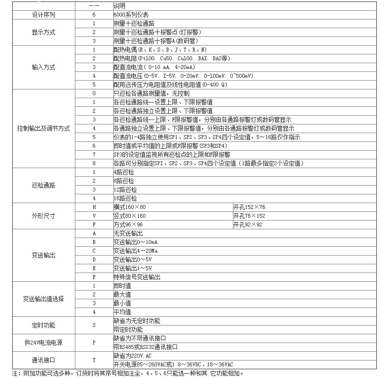 1.測量精度:±0. 5%FS+1字 2.調節控制精度:位式:±0. 5%FS 3.報警功能:上限、下限、上下限、下回差、雙回差等 4.輸入阻抗:0-10mA: 500Ω、4-20mA: 250Ω熱電偶及DCmV、 DCmV:≥10KΩ、冷端自動補償精度:0~40℃范圍內±0.3℃ 熱電阻:三線制輸入3×ioQ以內完全補償 5.繼電器接點容量:AC220V 2A 6.供電電源:AC220V≤6W ACIIOV DC24V