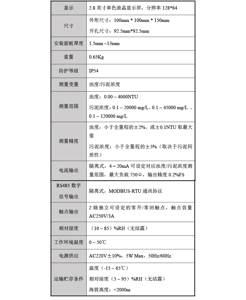 傳感器基于組合紅外吸收散射光線法,應用ISO7027方法可以連續測定污泥濃度。按照ISO7027紅外雙散射光線技術不受色度影響測定污泥濃度值。根據使用環境可以選配帶自清洗功能。數據穩定,性能可靠;內設自診功能,保證數據準確;安裝和校正簡單。控制器用于顯示傳感器所測得的數據,可以連接數字信號傳感器或模擬信號傳感器。用戶可以通過控制器的界面配置和校準實現4-20mA模擬輸出。可以實現繼電器控制及數字通訊等功能。